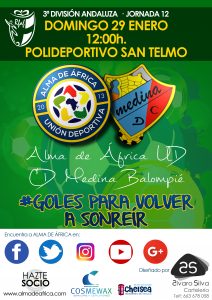 Afronta el partido el equipo local con la baja de su guardameta Abraham y con el debut en portería de Ayoub, el equipo visitante con la motivación de ser lideres destacados si ganan el partido. Alma de África sale al campo con la intención de olvidar las dos derrotas consecutivas en las pasadas jornadas y en el minuto 10 tiene su primera clara ocasión de gol que no materializa, en la siguiente jugada el Medina se adelanta en el marcador tras un gol de estrategia en la salida de un corner. Los locales no se vienen abajo y empiezan a dominar el partido teniendo varias opciones de empatar que son desaprovechadas, terminando la primera parte por debajo en el marcador pero con buenas sensaciones. Todo parecía indicar que en la segunda mitad los locales tendrían oportunidades de remontar el encuentro, pero muy pronto el Medina hace su segundo gol en un centro que se cuela en la red tras rebotar en el portero almafricano. Esto parecía sentenciar el partido y mas cuando faltando 20 minutos el capitán local Eric comete una falta que le cuesta la tarjeta amarilla y seguidamente la expulsión tras un incidente con el público. Alma de África se queda con un jugador menos y para mas desgracia el lanzamiento de la falta cometida por Eric supone el 0 a 3. Todo parece indicar que el partido está resuelto y que el Medina se llevará los tres puntos. Pero faltando 15 minutos un claro penalti cometido sobre Dani Estrade lo transforma Rafa colocando el 1 a 3 en el marcador. Esto hace creer a los locales en la remontada y comienzan a presionar, encerrando al Medina en su area. Faltando 7 minutos Javi aprovecha un regalo del portero Hurtado y sube el segundo gol al marcador local. El nerviosismo se apodera de los visitantes y a falta de 2 minutos Jaouad a la media vuelta de tiro cruzado desde dentro del area empata el partido. En medio de la euforia local y el desconcierto visitante, ya en el descuento del partido Javi culmina la increíble remontada y marca el cuarto gol local para dejar los tres puntos en Jerez y cerrar un encuentro memorable.